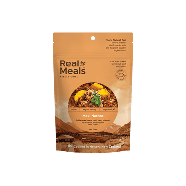Soldaderas beans, with tasty cheese, sour cream, and organic corn chips. Real Meals offers chef-cooked, high-quality freeze-dried meals for all of us hunter, hikers, trampers and backcountry adventurers. These delicious, nutritious meals bring amazing flavors and energy that you need to fuel you for your favorite outdoor adventure.